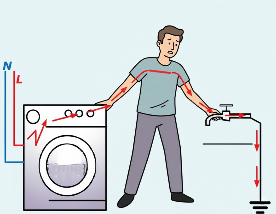 ПЗВ (пристрій захисного відключення) контролює різницю струмів між фазним і нульовим провідниками. У нормальному режимі вони рівні. Якщо частина струму «витікає» — наприклад, через корпус приладу або тіло людини — ПЗВ миттєво відключає живлення.