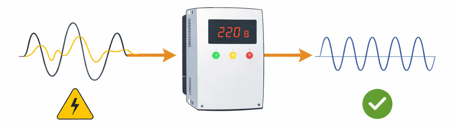 Стабілізатор напруги вирішує цю проблему, автоматично вирівнюючи напругу до безпечного рівня.